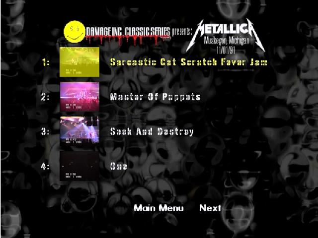 1. Cat Scratch Fever Jam 2. Master of Puppets 3. Seek & Destroy 4. One 5. Last Caress 6. Am I Evil? 7. Battery