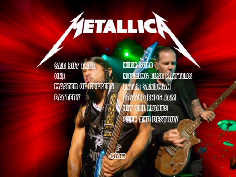 1. Sad But True 2. One 3. Master Of Puppets 4. Battery 5. Guitar Doodle 6. Nothing Else Matters 7. Enter Sandman 8. Frayed Ends Jam 9. Hit The Lights 10. Seek And Destroy [partial, slideshows & interview]