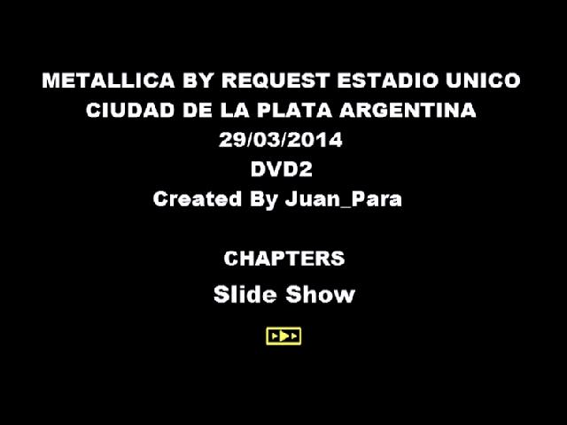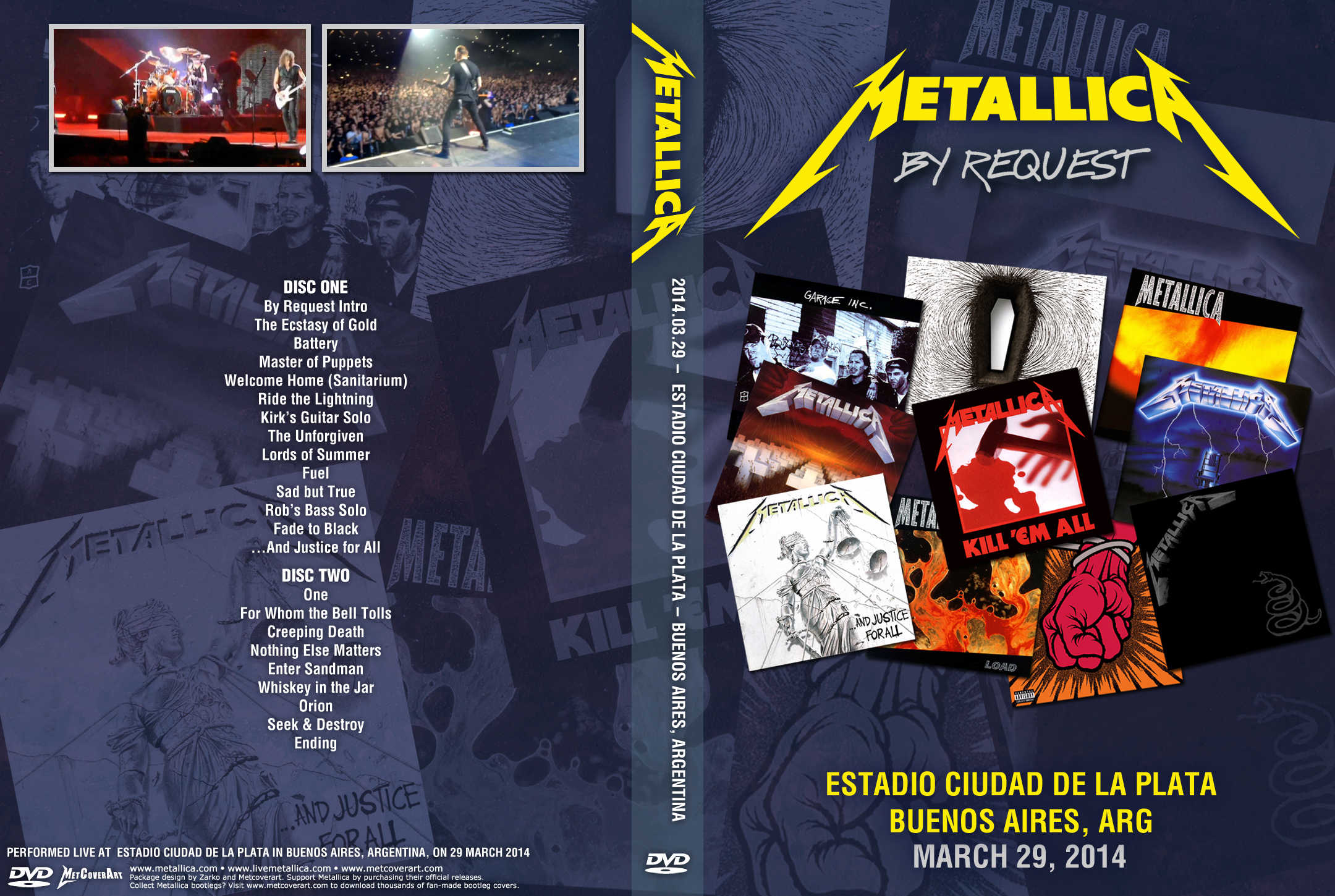 1. By Request Intro 2. The Ecstasy of Gold 3. Battery 4. Master of Puppets 5. Welcome Home (Sanitarium) 6. Ride the Lightning 7. Kirk Solo 8. The Unforgiven 9. Lords of Summer 10. Fuel 11. Sad but True 12. Bass Solo 13. Fade to Black 14. ... And Justice for All