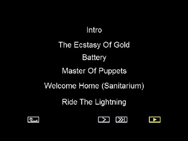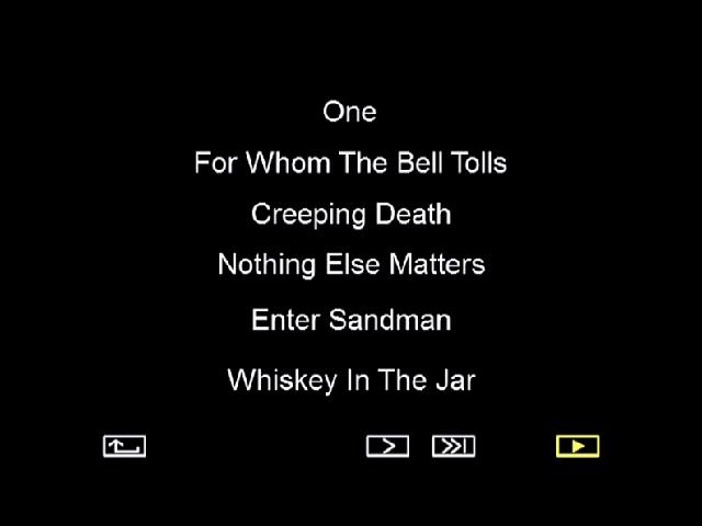 1. One 2. For Whom the Bell Tolls 3. Creeping Death 4. Nothing Else Matters 5. Enter Sandman 6. Whiskey in the Jar 7. Orion 8. Seek and Destroy 9. Ending