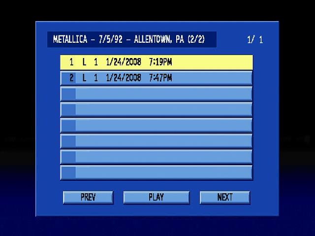 1. The Ecstasy of Gold 2. Creeping Death 3. Harvester of Sorrow 4. Fade to Black 5. Sad but True 6. Wherever I May Roam 7. Of Wolf and Man 8. For Whom the Bell Tolls 9. The Unforgiven 10. The Shortest Straw 11. Jason's solo 12. Kirk's solo 13. One 14. Master of Puppets 15. Seek and Destroy