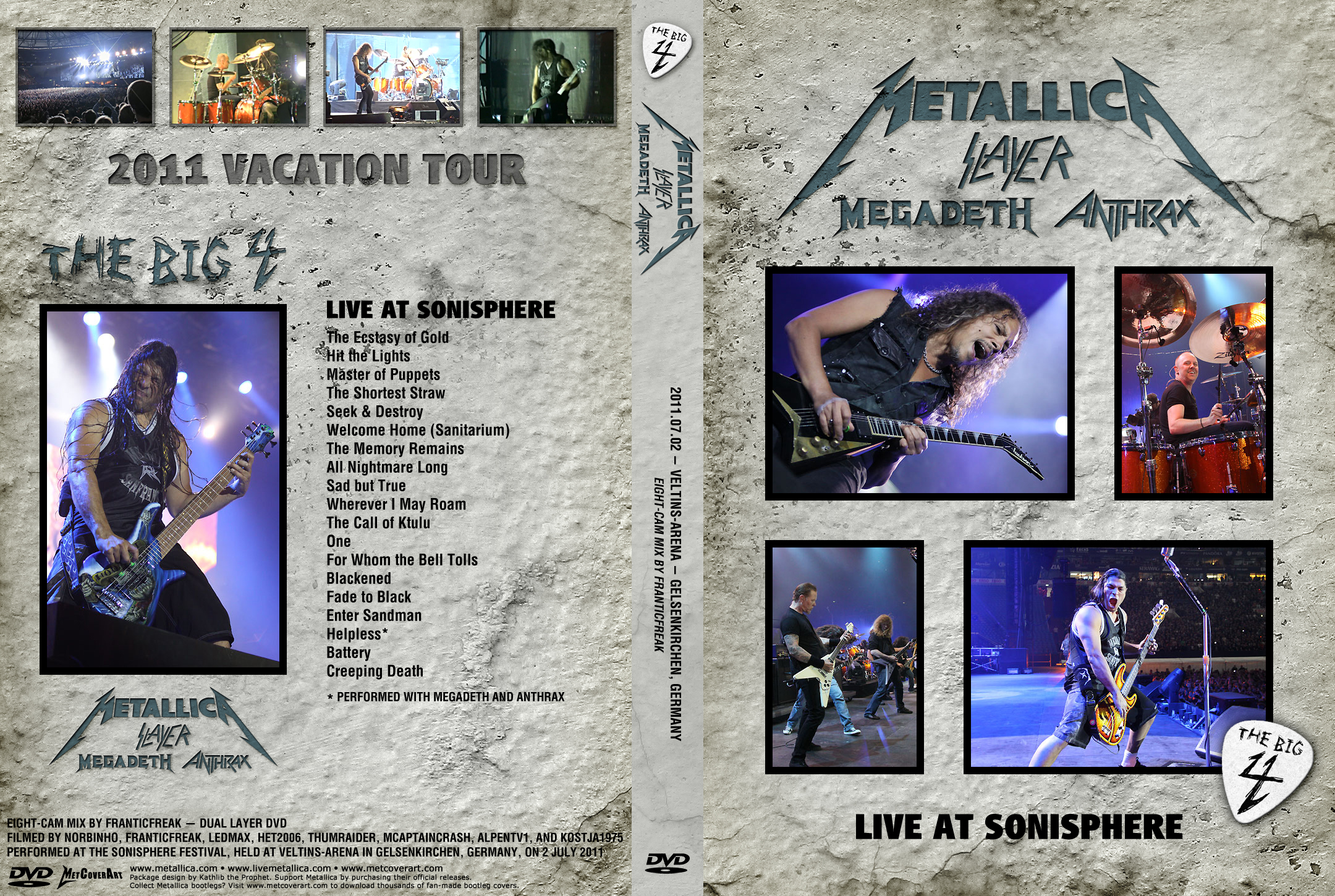 1. Fade to Black 2. Enter Sandman 3. Helpless (w/ Megadeth & Anthrax) 4. Battery 5. Creeping Death