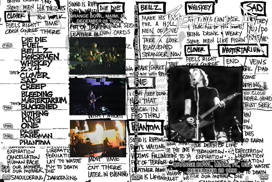 1. Die, Die My Darling 2. Fuel 3. For Whom the Bell Tolls 4. The Four Horsemen 5. Whiskey in the Jar 6. 2x4 7. No Leaf Clover 8. Sad but True 9. Creeping Death 10. Bleeding Me 11. Mastertarium 12. Blackened 13. Nothing Else Matters 14. King Nothing 15. One 16. Turn The Page 17. Enter Sandman 18. Phantom Lord