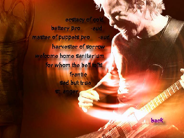 1. The Ecstasy of Gold 2. Battery 3. Master of Puppets 4. Harvester of Sorrow 5. Welcome Home (Sanitarium) 6. For Whom the Bell Tolls 7. Frantic 8. Sad but True 9. St. Anger