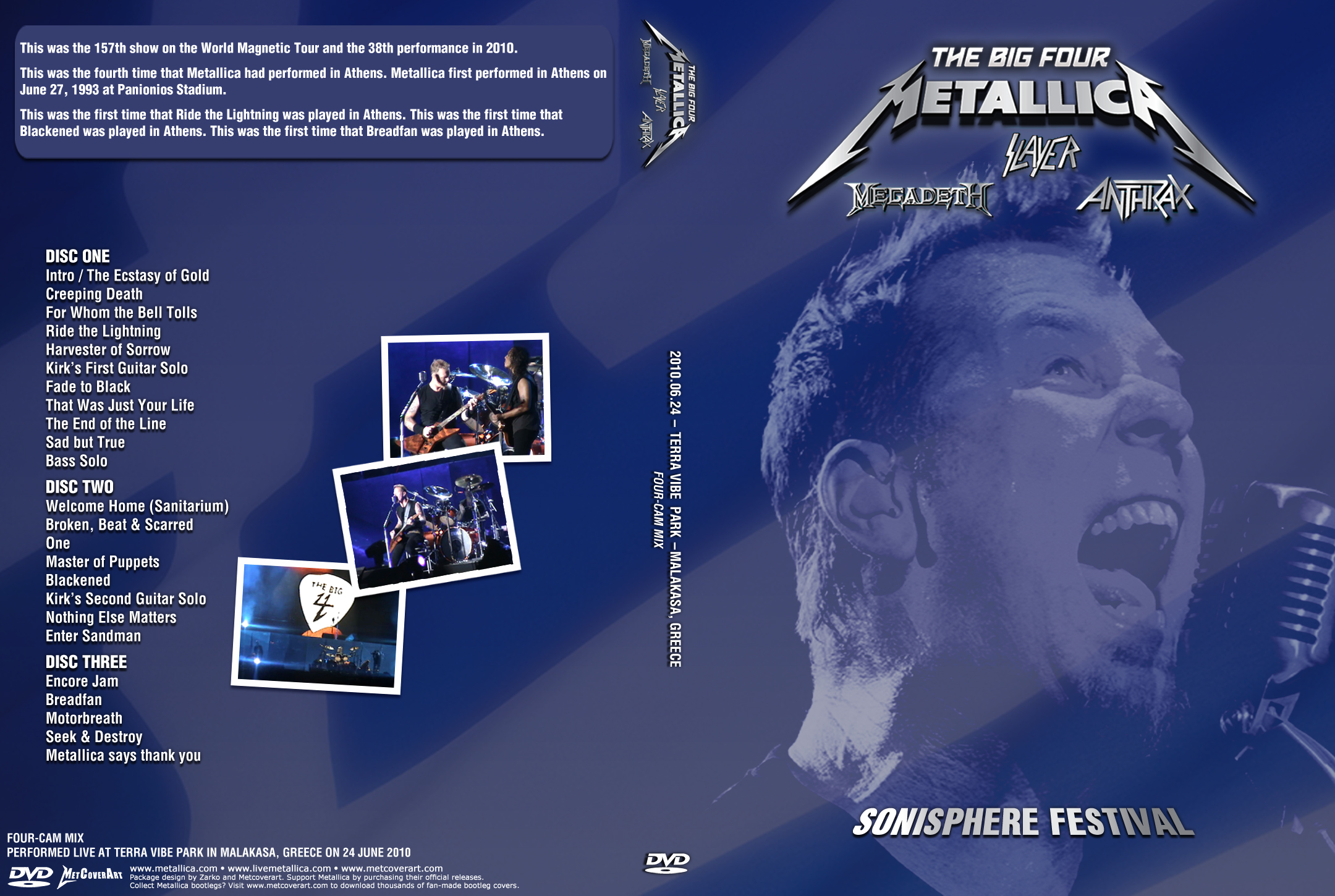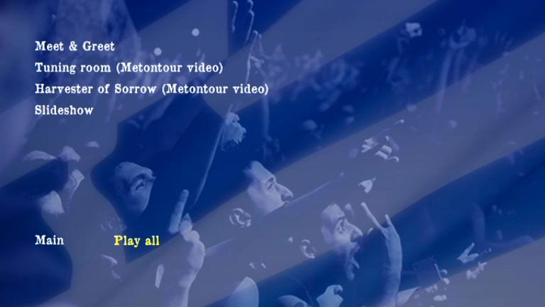 1. Intro / The Ecstasy of Gold 2. Creeping Death 3. For Whom the Bell Tolls 4. Ride the Lightning 5. Harvester of Sorrow 6. Guitar Solo 1 7. Fade to Black 8. That Was Just Your Life 9. The End of the Line 10. Sad but True 11. Bass Solo