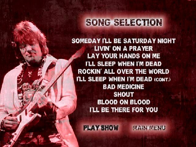 1. Someday I'll Be Saturday Night 2. Livin' on a Prayer 3. Lay Your Hands on Me 4. I'll Sleep When I'm Dead 5. Bad Medicine 6. Blood on Blood 7. I'll Be There for You 8. I Don't Want to Go Home