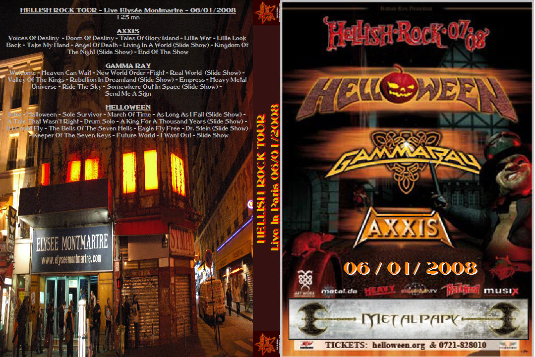 1. Intro 2. Halloween (Cut out) 3. March of Time 4. As Long As I Fall 5. A Tale That Wasn't Right 6. Drum Solo 7. The King for the 1000 Years (Cut in & out) 8. If I Could Fly (Cut out) 9. The Bells of the 7 Hells (Cut in & out) 10. Dr. Stein 11. Future World (With Gamma Ray) 12. I Want Out (With Gamma Ray)