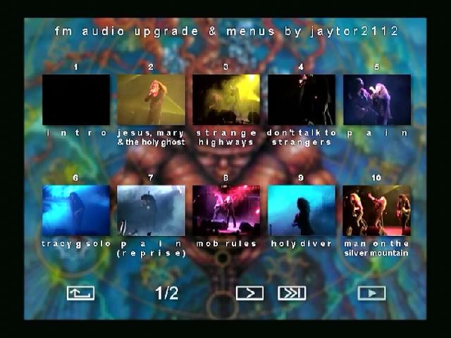 1. Intro 2. Jesus Mary & The Holy Ghost 3. Strange Highways 4. Don't Talk to Strangers 5. Pain 6. Guitar Solo 7. Pain (Reprise) 8. The Mob Rules 9. Holy Diver 10. Man on the Silver Mountain 11. Drum Solo 12. Heaven and Hell 13. Evilution 14. Give Her the Gun 15. Stand Up and Shout 16. The Last in Line 17. Rainbow in the Dark 18. We Rock 19. Here's to You