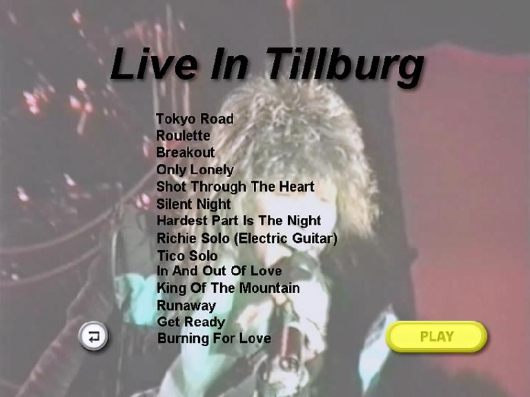 1. Tokyo Road 2. Roulette 3. Breakout 4. Only Lonely 5. Bang Bang / Shot Through the Heart 6. Silent Night 7. The Hardest Part Is the Night 8. Electric Guitar Solo / Drums Solo / In and Out of Love 9. King of the Mountain 10. Runaway 11. Get Ready 12. I Don't Wanna Go Home 13. Burning for Love