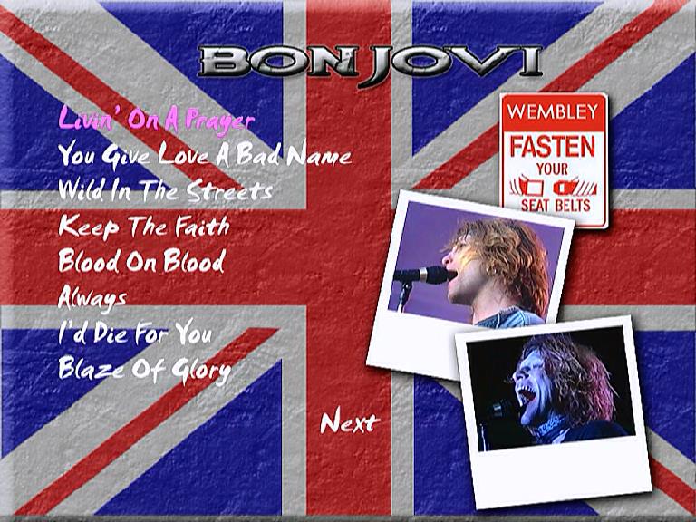 1. Living on a Prayer 2. You Give Love a Bad Name 3. Wild in the Streets 4. Keep the Faith 5. Blood on Blood 6. Always 7. I'd Die For You 8. Blaze of Glory 9. Runaway 10. Dry County 11. Lay Your Hands on Me