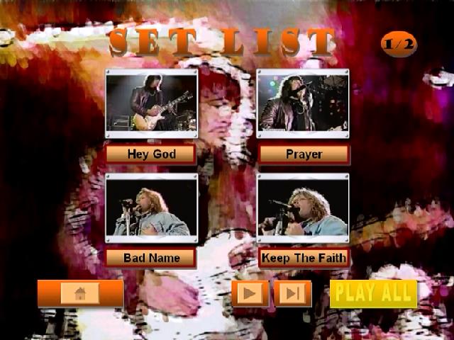 1. Hey God 2. Livin' on a Prayer 3. You Give Love a Bad Name 4. Keep The Faith 5. These Days 6. Someday I'll Be Saturday Night 7. Something for the Pain 8. Damned / If Lovin' You Is Wrong