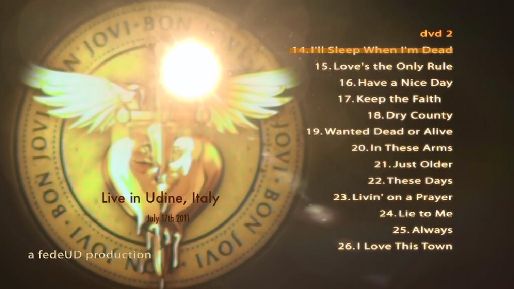 1. I'll Sleep When I'm Dead 2. Love's the Only Rule 3. Have a Nice Day 4. Keep the Faith 5. Dry County 6. Wanted Dead or Alive 7. In These Arms 8. Just Older 9. These Days 10. Livin' on a Prayer 11. Lie to Me 12. Always 13. I Love This Town