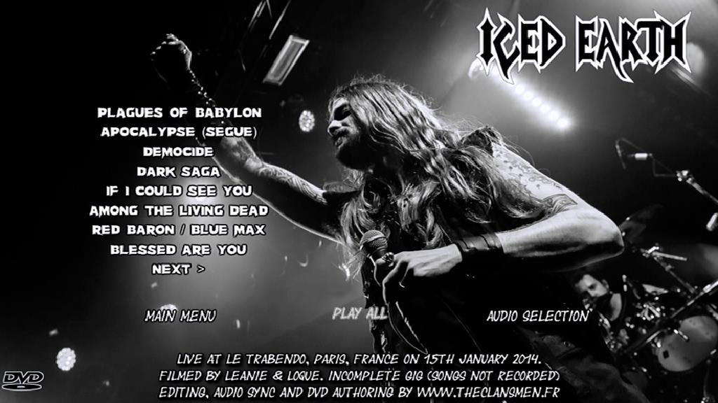 1. Plagues of Babylon 2. Apocalypse (Segue) 3. Democide 4. Dark Saga 5. If I Could See You 6. Among the Living Dead 7. Red Baron / Blue Max 8. Blessed Are You 9. Peacemaker 10. Vengeance is Mine 11. Cthulhu 12. My Own Savior 13. A Question of Heaven 14. Dystopia 15. Watching Over Me 16. Iced Earth