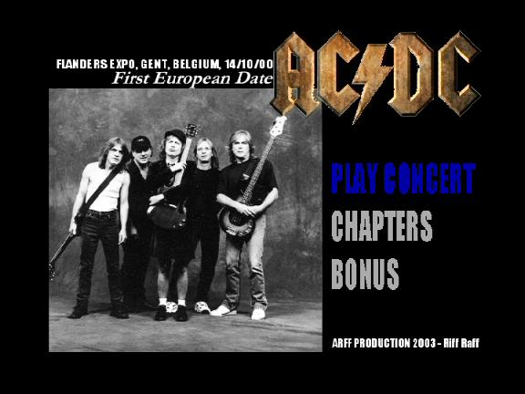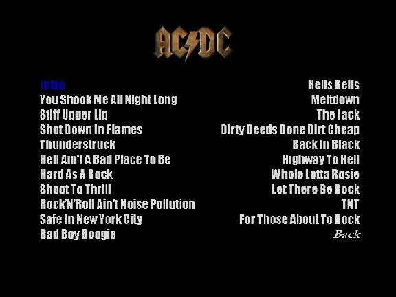 1. You Shook Me All Night Long 2. Stiff Upper Lip 3. Shot Down in Flames 4. Thunderstruck 5. Hell Ain't a Bad Place to Be 6. Hard as a Rock 7. Shoot to Thrill 8. Rock and Roll Ain't Noise Pollution 9. Safe in New York City 10. Bad Boy Boogie 11. Hells Bells 12. Meltdown 13. The Jack 14. Dirty Deed Done Dirt Cheap 15. Back in Black 16. Highway to Hell 17. Whole Lotta Rosie 18. Let There Be Rock 19. TNT 20. For Those About to Rock