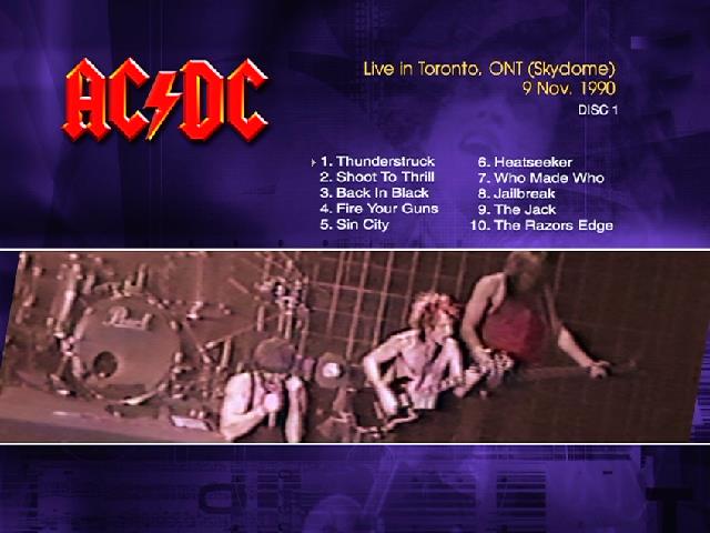 1. Thunderstruck 2. Shoot to Thrill 3. Back in Black 4. Fire Your Guns 5. Sin City 6. Heatseeker 7. Who Made Who 8. Jailbreak 9. The Jack 10. The Razors Edge