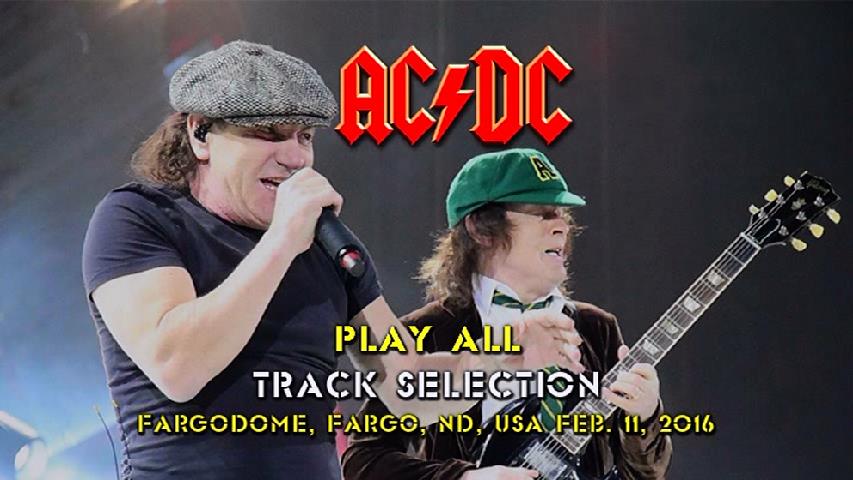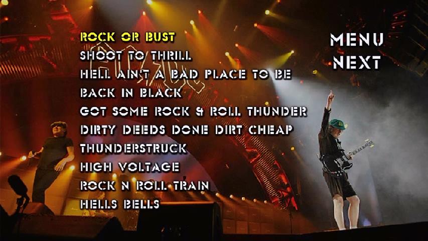 1. Intro 2. Rock or Bust 3. Shoot to Thrill 4. Hell Ain't a Bad Place to Be 5. Back in Black 6. Got Some Rock & Roll Thunder 7. Dirty Deeds Done Dirt Cheap 8. Thunderstruck 9. High Voltage 10. Rock 'n' Roll Train 11. Hells Bells 12. Giving the Dog a Bone 13. Sin City 14. You Shook Me All Night Long 15. Shot Down In Flames 16. Have a Drink on Me 17. T.N.T. 18. Whole Lotta Rosie 19. Let There Be Rock 20. Highway to Hell 21. For Those About to Rock (We Salute You)
