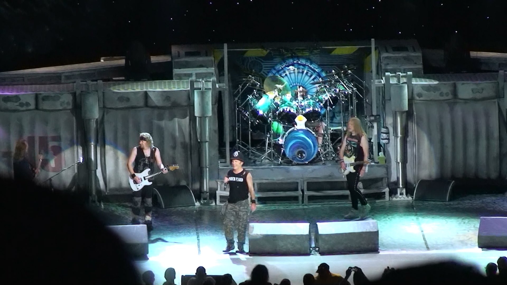 Taper's Notes : I finally got to film my favorite band Iron Maiden after many years. At least this time going to film them at PNC there was no pouring rain like last time, so I didn't have to stow my video camera in a ziplock freezer bag the whole show. I don't see video coming out of this venue so figured I'd give it a shot. Filming went pretty good. The lawn is like a thousand miles away from the stage. I shot The Wicker Man with a 10x optical zoom. Seemed a bit distant so I changed to 20x digital zoom for Ghost of the Navigator. Handheld it was hard to keep that kind of zooming steady. I didn't want a shakey video so I did a mix of full stage, screen and some zooming (take a deep breath & stay still as possible!). Tape flip was during blood brothers. There is a 30 second portion of that song missing towards the end. There are three ducks (not too long) as these water sellers with the venue came near me. I hope you enjoy the footage.