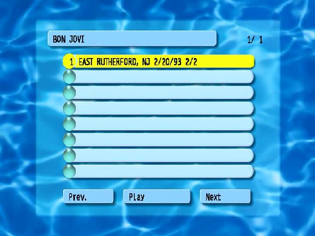1. Lay Your Hands on Me 2. Blood on Blood 3. Bad Medicine / Shout 4. Acoustic Guitar Solo / Wanted Dead or Alive 5. Livin' on a Prayer 6. I'll Sleep When I'm Dead 7. Never Say Goodbye (Acoustic)