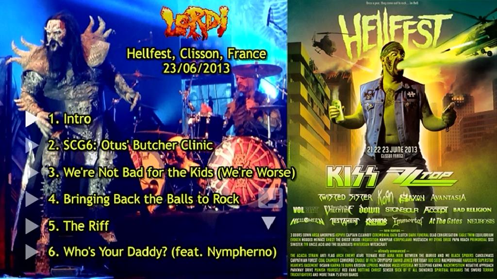 1. Intro 2. SCG6: Otus' Butcher Clinic 3. We're Not Bad for the Kids (We're Worse) 4. Bringing Back the Balls to Rock 5. The Riff 6. Who's Your Daddy? (feat. Nympherno) 7. Blood Red Sandman 8. It Snows in Hell (with Jay Jay French) 9. Drum Solo 10. Supermonstars (The Anthem of the Phantoms) 11. I'm the Best 12. Guitar Solo 13. They Only Come Out at Night 14. Devil Is a Loser 15. Hard Rock Hallelujah 16. Sincerely With Love (feat. Nympherno) 17. Would You Love a Monsterman?