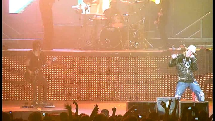 1. Chinese Democracy (stopped and skipped because people were throwing shit) 2. Welcome to the Jungle 3. It's So Easy 4. Mr. Brownstone 5. Sorry 6. Better 7. Estranged 8. Rocket Queen 9. Richard Fortus Guitar Solo 10. Live and Let Die 11. This I Love 12. Riff Raff 13. My Generation 14. Dizzy Reed Piano Solo 15. Street of Dreams 16. You Could Be Mine 17. DJ Ashba Guitar Solo (Mi Amor) 18. Sweet Child O' Mine 19. Another Brick in the Wall Part 2 20. Axl Rose Piano Solo 21. November Rain 22. Bumblefoot Guitar Solo 23. Don't Cry 24. Whole Lotta Rosie 25. Knockin' on Heaven's Doo 26. Nightrain 27. Jam 28. Madagascar 29. Jam 30. Paradise City