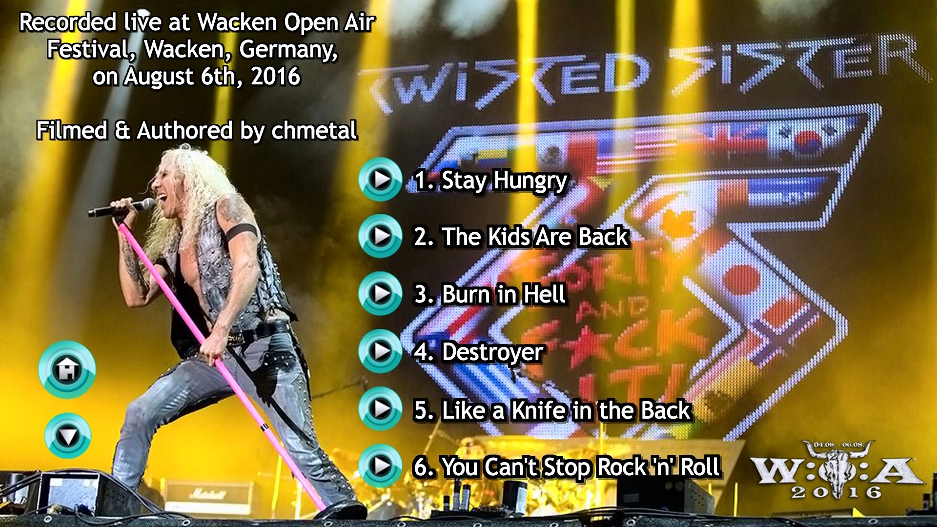 1. Stay Hungry 2. The Kids Are Back 3. Burn in Hell 4. Destroyer 5. Like a Knife in the Back 6. You Can't Stop Rock 'n' Roll 7. The Fire Still Burns 8. I Am (I'm Me) 9. We're Not Gonna Take It 10. The Price 11. I Believe in Rock 'n' Roll 12. Under the Blade 13. I Wanna Rock 14. Come Out and Play Intro 15. Shoot 'Em Down 16. Tear It Loose 17. S.M.F.