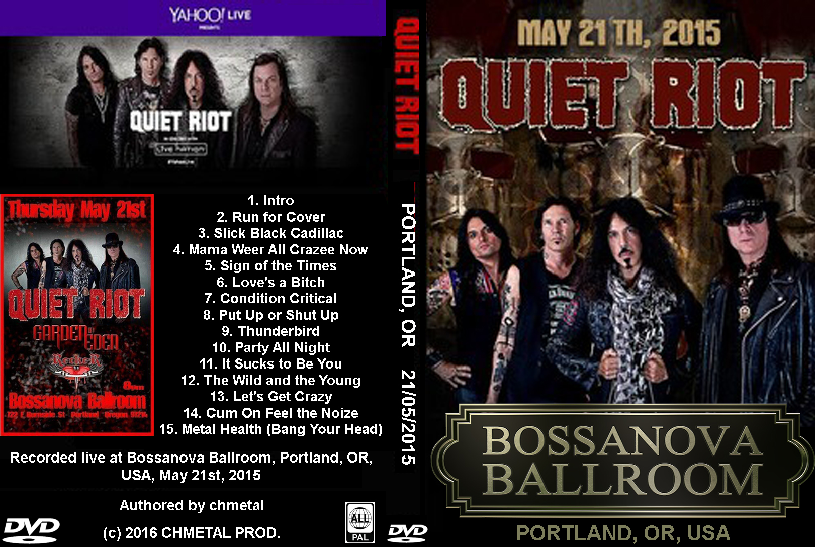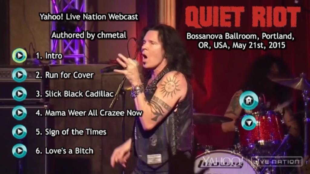 1. Intro 2. Run for Cover 3. Slick Black Cadillac 4. Mama Weer All Crazee Now 5. Sign of the Times 6. Love's a Bitch 7. Condition Critical 8. Put Up or Shut Up 9. Thunderbird 10. Party All Night 11. It Sucks to Be You 12. The Wild and the Young 13. Let's Get Crazy 14. Cum On Feel the Noize 15. Metal Health (Bang Your Head)