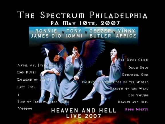 1. E5150 / After All (The Dead) 2. Mob Rules 3. Children of the Sea 4. Lady Evil 5. I 6. The Sign of the Southern Cross 7. Voodoo 8. The Devil Cried 9. Drum Solo 10. Computer God 11. Falling off the Edge of the World 12. Shadow of the Wind 13. Die Young 14. Heaven and Hell 15. Neon Knights
