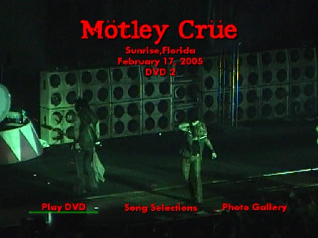 1. Start DVD 2 2. Glitter 3. Without You 4. Home Sweet Home 5. Louder Than Hell 6. Nikki Sixx Solo 7. Dr. Feelgood 8. Afraid 9. Tommy Lee Solo 10. Same Ol' Situation 11. If I Die Tomorrow 12. Sick Love Song 13. Kickstart My Heart 14. Helter Skelter 15. Anarchy In The U.K.