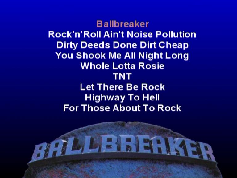 1. Ballbreaker 2. Rock and Roll Ain't Noise Pollution 3. Dirty Deeds Done Dirt Cheap 4. You Shook Me All Night Long 5. Whole Lotta Rosie 6. TNT 7. Let There Be Rock 8. Highway to Hell 9. For Those About to Rock (cut)