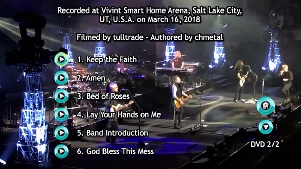 1. Keep the Faith 2. Amen 3. Bed of Roses 4. Lay Your Hands on Me 5. Band Introduction 6. God Bless This Mess 7. Have a Nice Day 8. Bad Medicine 9. Encore 10. I Love This Town 11. Wanted Dead or Alive 12. Livin' on a Prayer