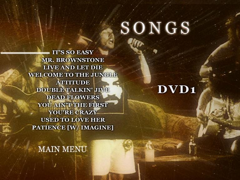 1. It's So Easy 2. Mr. Brownstone 3. Live and Let Die 4. Welcome to the Jungle 5. Attitude 6. Double Talkin' Jive 7. Dead Flowers 8. You Ain't The First 9. You're Crazy 10. Used to Love Her 11. Patience (with Imagine)