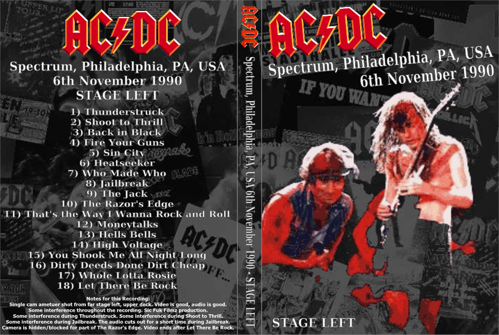 1. Thunderstruck 2. Shoot to Thrill 3. Back in Black 4. Fire Your Guns 5. Sin City 6. Heatseeker 7. Who Made Who 8. Jailbreak 9. The Jack 10. The Razors Edge (cut)