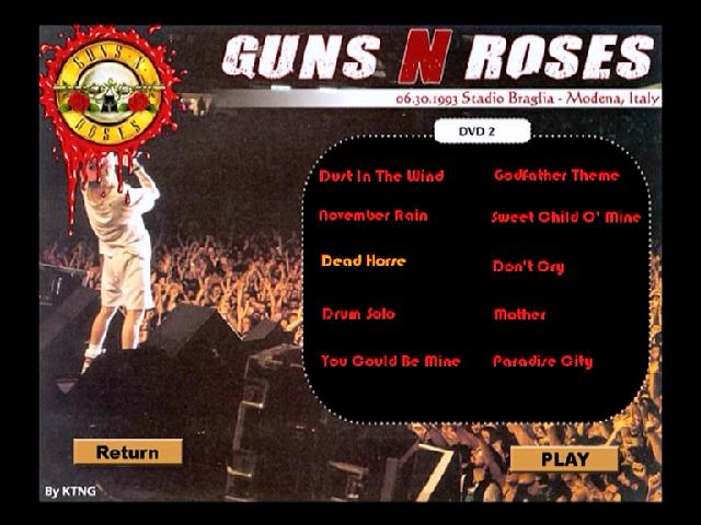 1. Dust in the Wind 2. November Rain 3. Dead Horse 4. Matt Sorum Drum Solo 5. You Could Be Mine 6. Speak Softly, Love 7. Sweet Child O' Mine 8. Don’t Cry 9. Mother 10. Paradise City