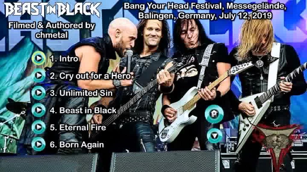 1. Intro 2. Cry out for a Hero 3. Unlimited Sin 4. Beast in Black 5. Eternal Fire 6. Born Again 7. Die by the Blade 8. Crazy, Mad, Insane 9. Sweet True Lies 10. From Hell with Love 11. Blind and Frozen 12. End of the World 13. Outro - No Easy Way Out