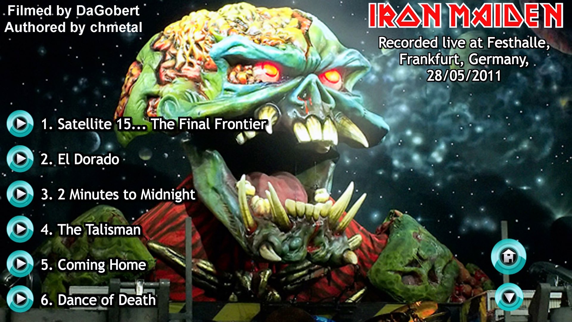 1. Satellite 15 ... The Final Frontier 2. El Dorado 3. Two Minutes to Midnight 4. The Talisman 5. Coming Home 6. Dance of Death 7. The Trooper 8. The Wicker Man 9. Blood Brothers 10. When the Wild Wind Blows 11. The Evil That Men Do 12. Fear of the Dark 13. Iron Maiden 14. The Number of the Beast 15. Hallowed Be Thy Name 16. Running Free