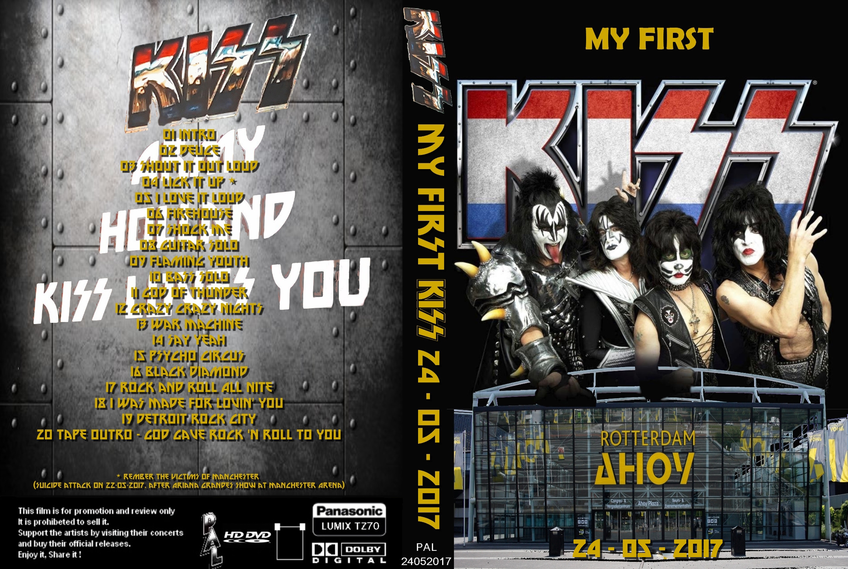 1. Intro 2. Deuce 3. Shout It Out Loud 4. Lick It Up 5. I Love It Loud 6. Firehouse 7. Shock Me 8. Guitar Solo 9. Flaming Youth 10. Bass Solo 11. God of Thunder 12. Crazy Crazy Nights 13. War Machine 14. Say Yeah 15. Psycho Circus 16. Black Diamond 17. Rock and Roll All Nite 18. I Was Made for Lovin’ You 19. Detroit Rock City 20. Tape Outro - God Gave Rock 'n Roll to You