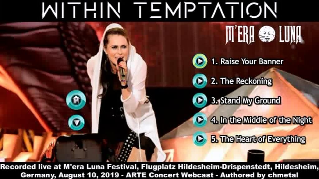 1. Raise Your Banner 2. The Reckoning 3. Stand My Ground 4. In the Middle of the Night 5. The Heart of Everything 6. Ice Queen (Acoustic) 7. Faster 8. Supernova 9. Paradise (What About Us?) 10. What Have You Done 11. Mad World 12. Mother Earth 13. Blood of My Blood (Outro)