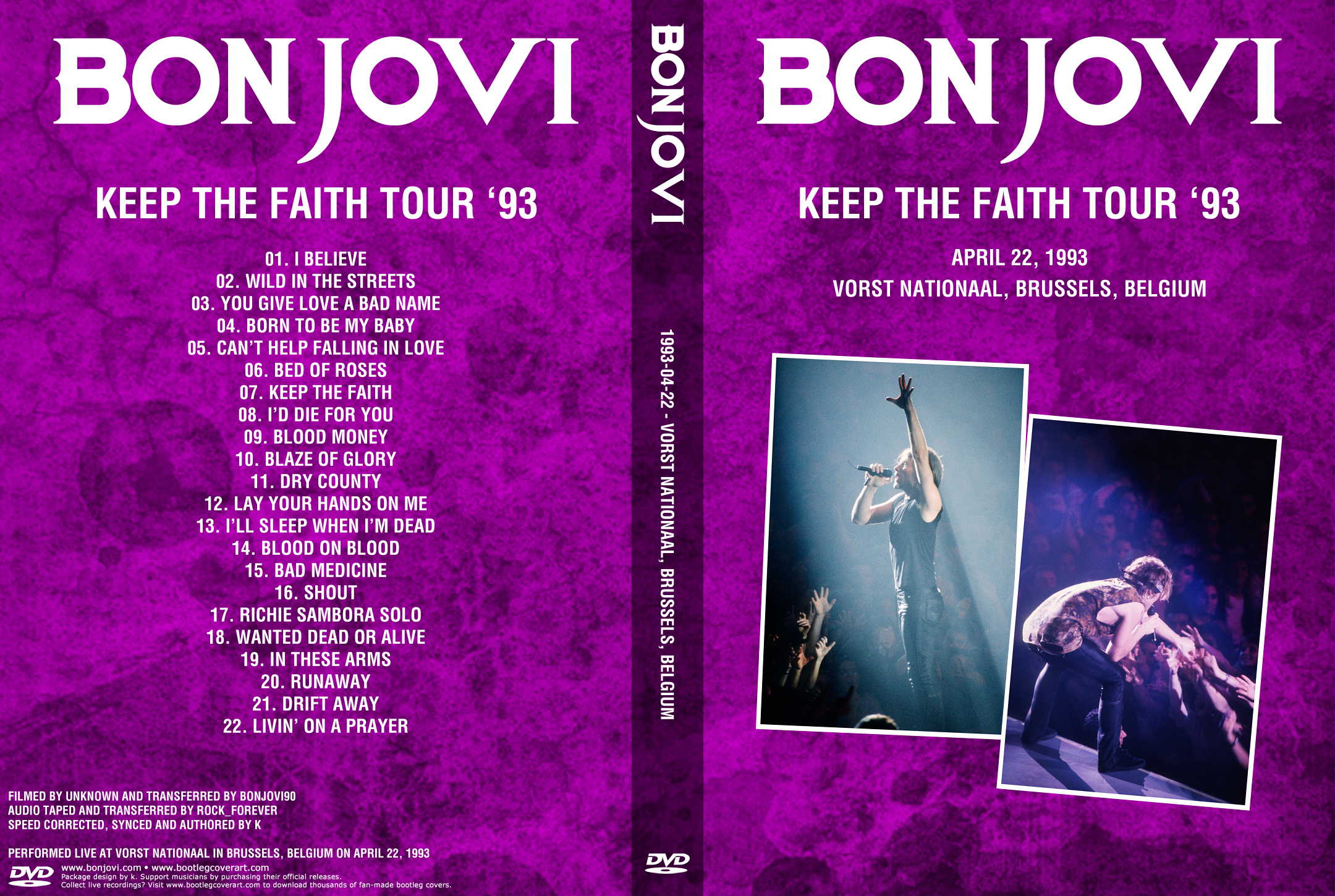 1. I Believe 2. Wild in the Streets 3. You Give Love a Bad Name 4. Born to Be My Baby 5. Can't Help Falling in Love 6. Bed of Roses 7. Keep the Faith 8. I'd Die for You 9. Blood Money 10. Blaze of Glory 11. Dry County 12. Lay Your Hands on Me 13. I'll Sleep When I'm Dead 14. Blood on Blood 15. Bad Medicine 16. Shout 17. Richie Sambora Solo 18. Wanted Dead or Alive 19. In These Arms 20. Runaway 21. Drift Away 22. Livin' on a Prayer