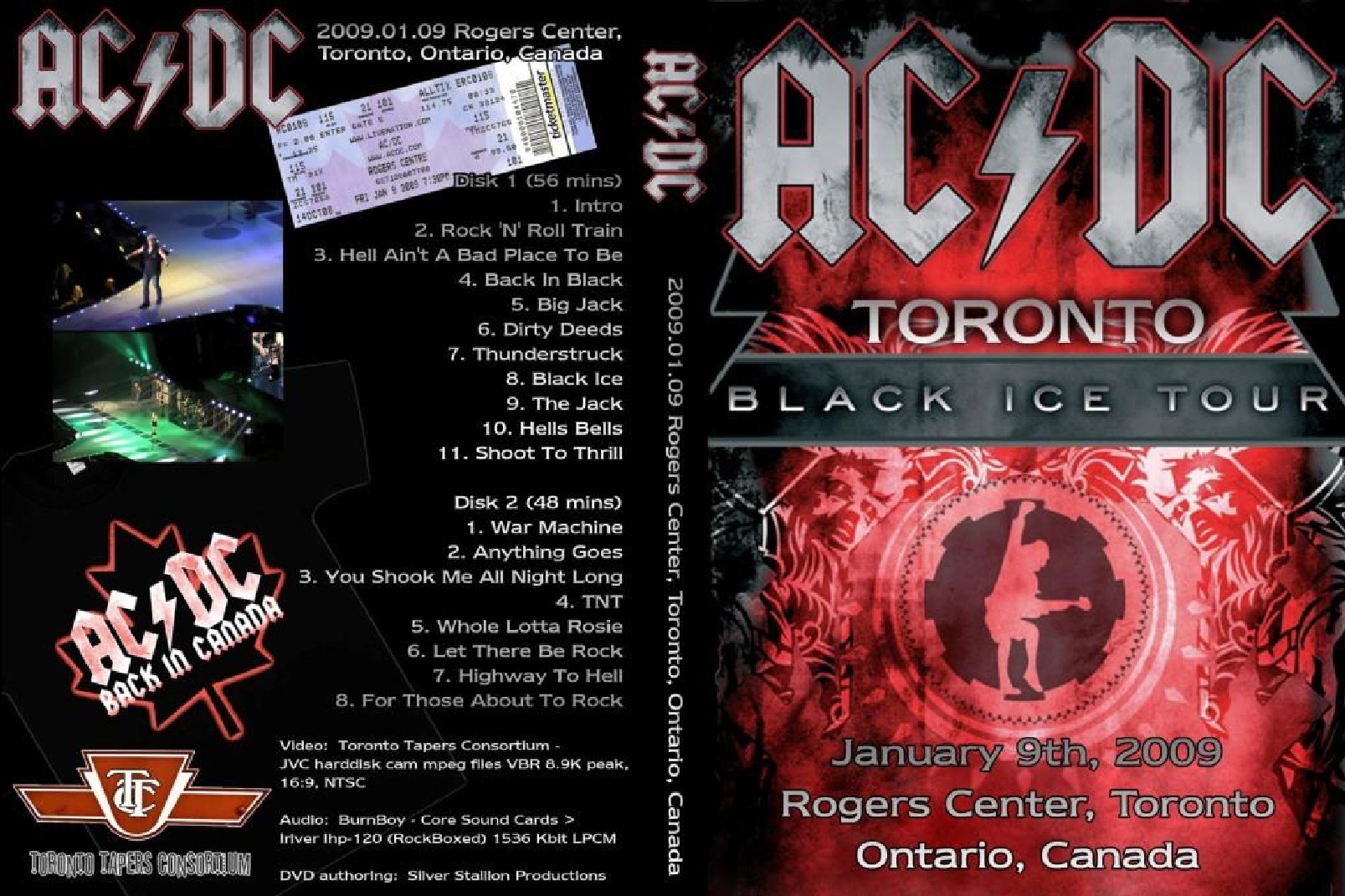1. Cartoon Intro 2. Rock'N'Roll Train 3. Hell Ain't A Bad Place to Be 4. Back in Black 5. Big Jack 6. Dirty Deeds Done Dirt Cheap 7. Thunderstruck 8. Black Ice 9. The Jack 10. Hells Bells 11. Shoot to Thrill 12. War Machine 13. Anything Goes 14. You Shook Me All Night Long 15. T.N.T. 16. Whole Lotta Rosie 17. Let There be Rock 18. Highway to Hell 19. For Those About to Rock (We Salute You)