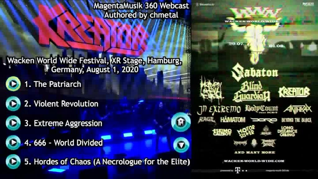 1. The Patriarch 2. Violent Revolution 3. Extreme Aggression 4. 666 - World Divided 5. Hordes of Chaos (A Necrologue for the Elite) 6. Satan Is Real 7. Awakening of the Gods 8. Enemy of God 9. Hail to the Hordes 10. Mars Mantra 11. Phantom Antichrist 12. People of the Lie 13. Betrayer 14. Pleasure to Kill 15. Apocalypticon