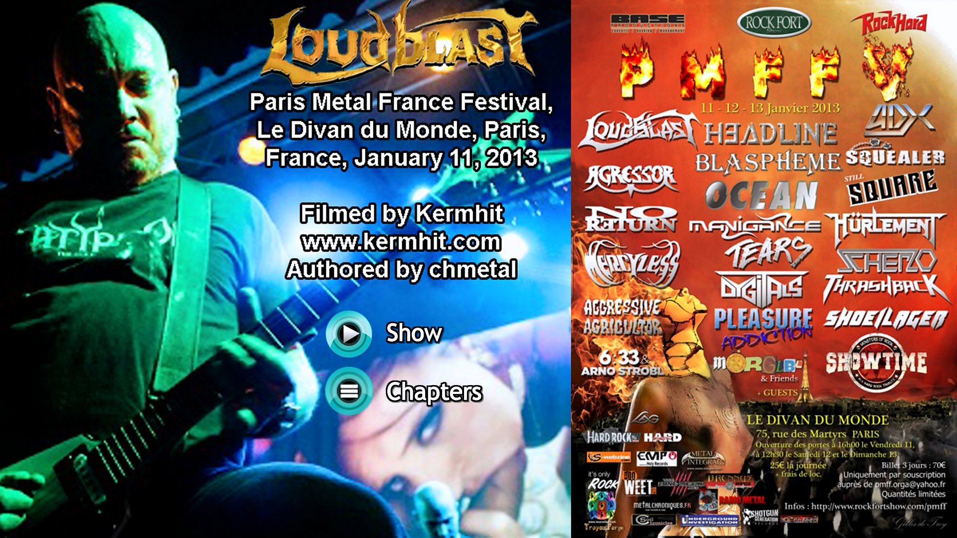1. Flesh 2. Emptiness Crushes My Soul 3. Never Endin' Blast 4. Cross the Threshold 5. My Last Journey 6. The Horror Within (avec 666 Torturer d'Arkhon Infaustus à la basse/vocaux) 7. Orgasmatron (Motörhead cover) (avec 666 Torturer d'Arkhon Infaustus, Sibylle Colin-Tocquaine de Witches et Christophe Godin) 8. Mandatory Suicide (Slayer cover) (avec Arno Strobl (ex-Carnival in Coal) au chant et Christophe Godin à la guitare) 9. Bark at the Moon (Ozzy Osbourne cover) (avec Arno Strobl et Sibylle Colin-Tocquaine de Witches au chant puis Christophe Godin) 10. Outro 11. Phil Em All Speech (Festival Organizer)