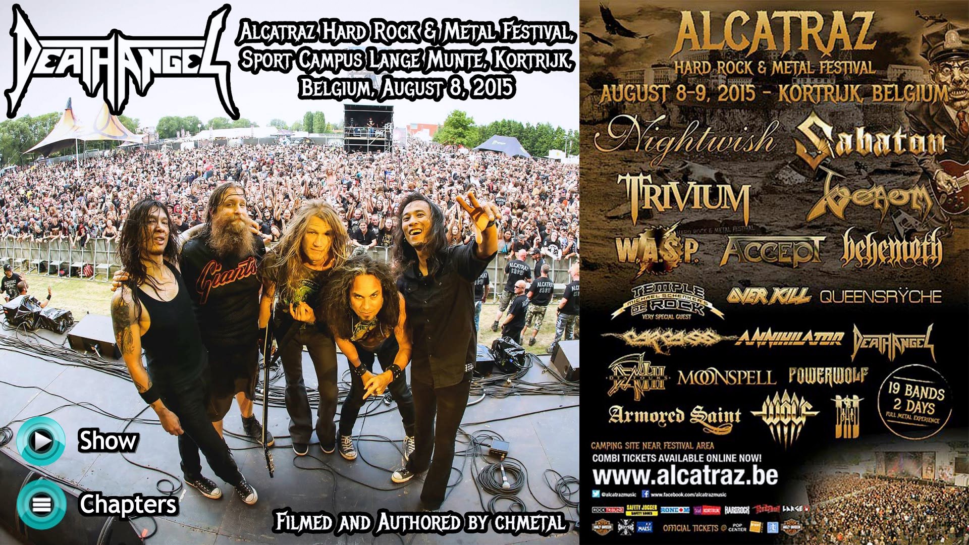 Band name: Death Angel Date: 8 August 2015 Venue: Sport Campus Lange Munte Location: Kortrijk, Belgium Tour name: The Tour Calls for Blood Europe 2015 Event: Alcatraz Hard Rock & Metal Festival Type:
