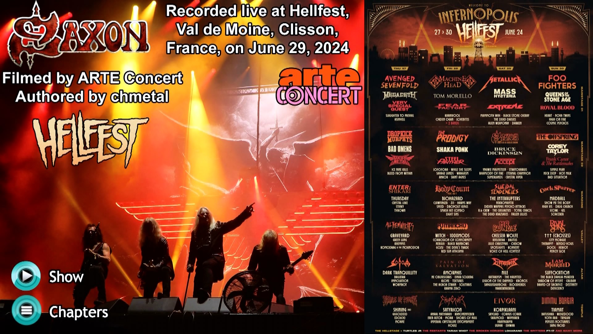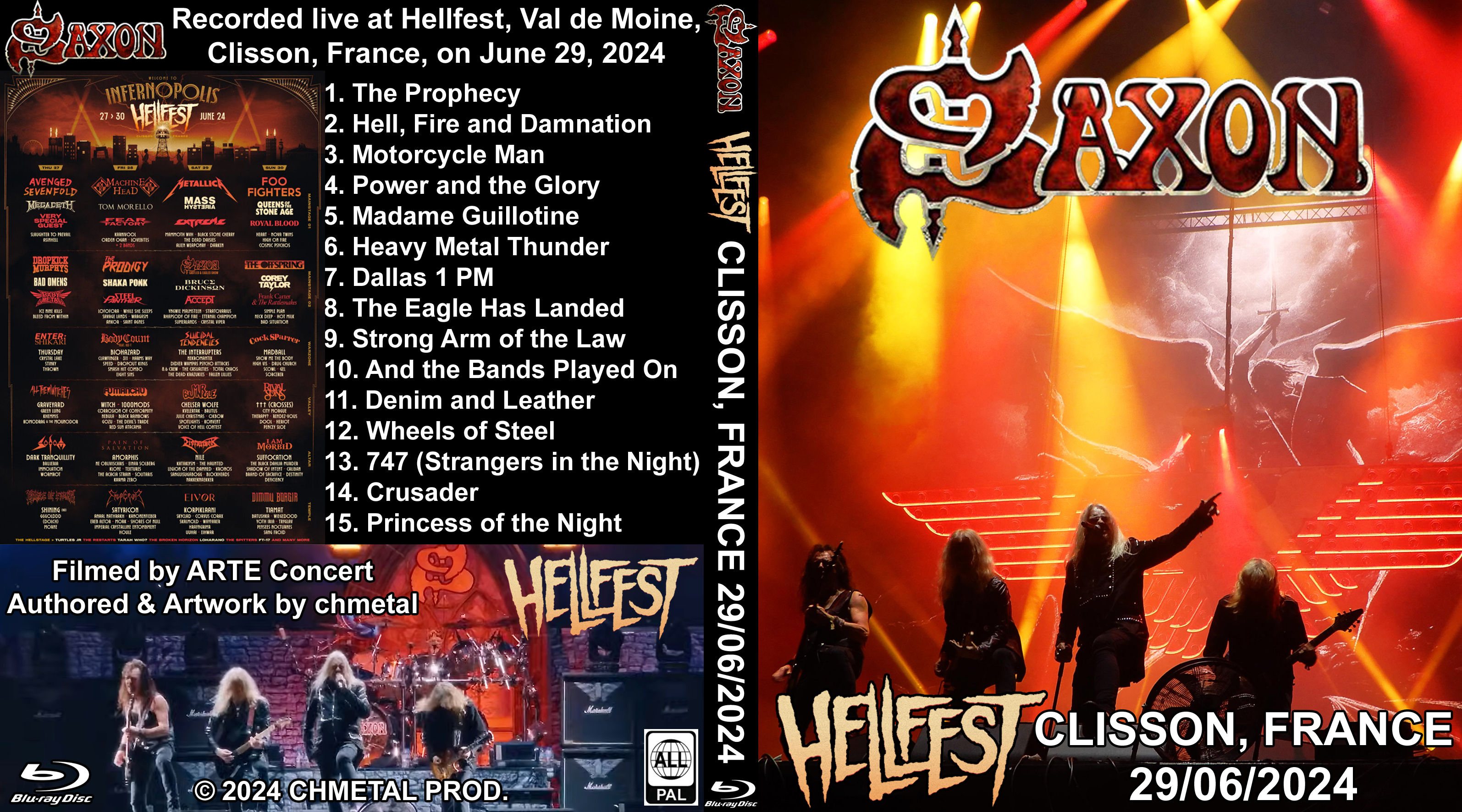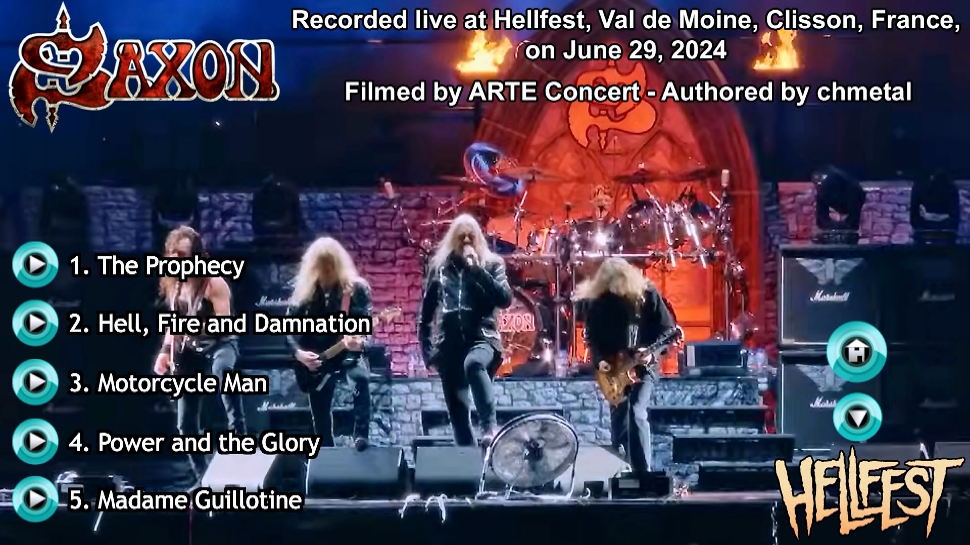 1. The Prophecy 2. Hell, Fire and Damnation 3. Motorcycle Man 4. Power and the Glory 5. Madame Guillotine 6. Heavy Metal Thunder 7. Dallas 1 PM 8. The Eagle Has Landed 9. Strong Arm of the Law 10. And the Bands Played On 11. Denim and Leather 12. Wheels of Steel 13. 747 (Strangers in the Night) 14. Crusader 15. Princess of the Night