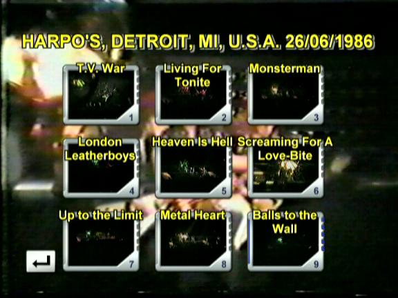 1. T.V. War 2. Living for Tonite 3. Monsterman 4. London Leatherboys 5. Heaven Is Hell 6. Screaming for a Love-Bite 7. Up to the Limit 8. Metal Heart 9. Balls to the Wall