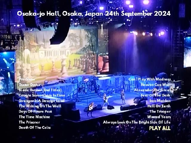1. Pre-Show (by Giappone TV) 2. Intro (UFO - Doctor Doctor) 3. Blade Runner Theme 4. Caught Somewhere in Time 5. Stranger in a Strange Land 6. The Writing on the Wall 7. Days of Future Past 8. The Time Machine 9. The Prisoner 10. Death of the Celts 11. Can I Play With Madness 12. Heaven Can Wait 13. Alexander the Great 14. Fear of the Dark 15. Iron Maiden 16. Hell on Earth 17. The Trooper 18. Wasted Years 19. Outro (Always Look on the Bright Side of Life)