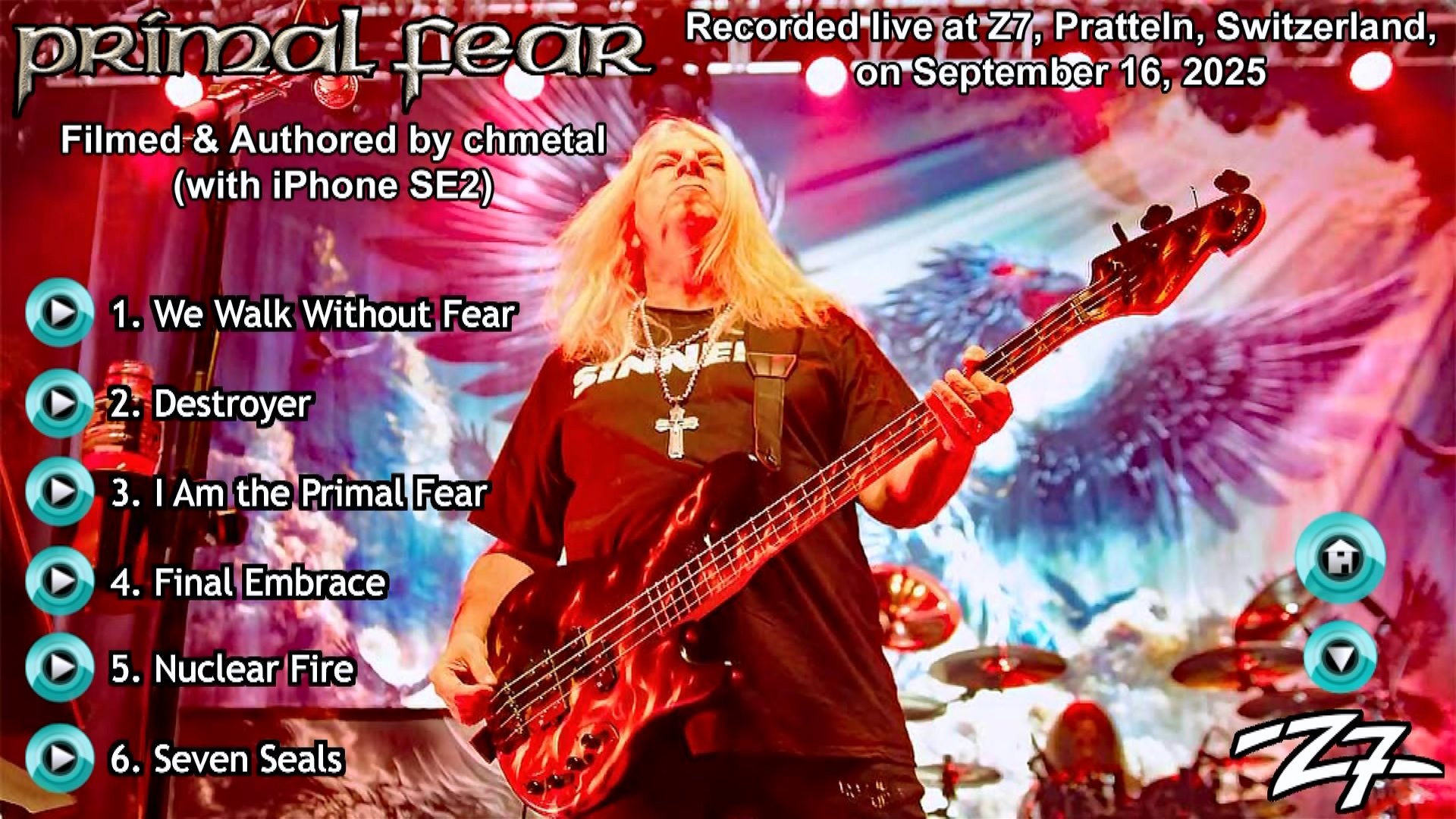 1. We Walk Without Fear Intro 2. Destroyer 3. I Am the Primal Fear 4. Final Embrace 5. Nuclear Fire 6. Seven Seals 7. The Hunter 8. Tears of Fire 9. King of Madness 10. The End Is Near 11. Hallucinations 12. Fighting the Darkness 13. -Band Introduction- 14. Chainbreaker 15. Metal Is Forever 16. Running in the Dust 17. Eden (Outro)