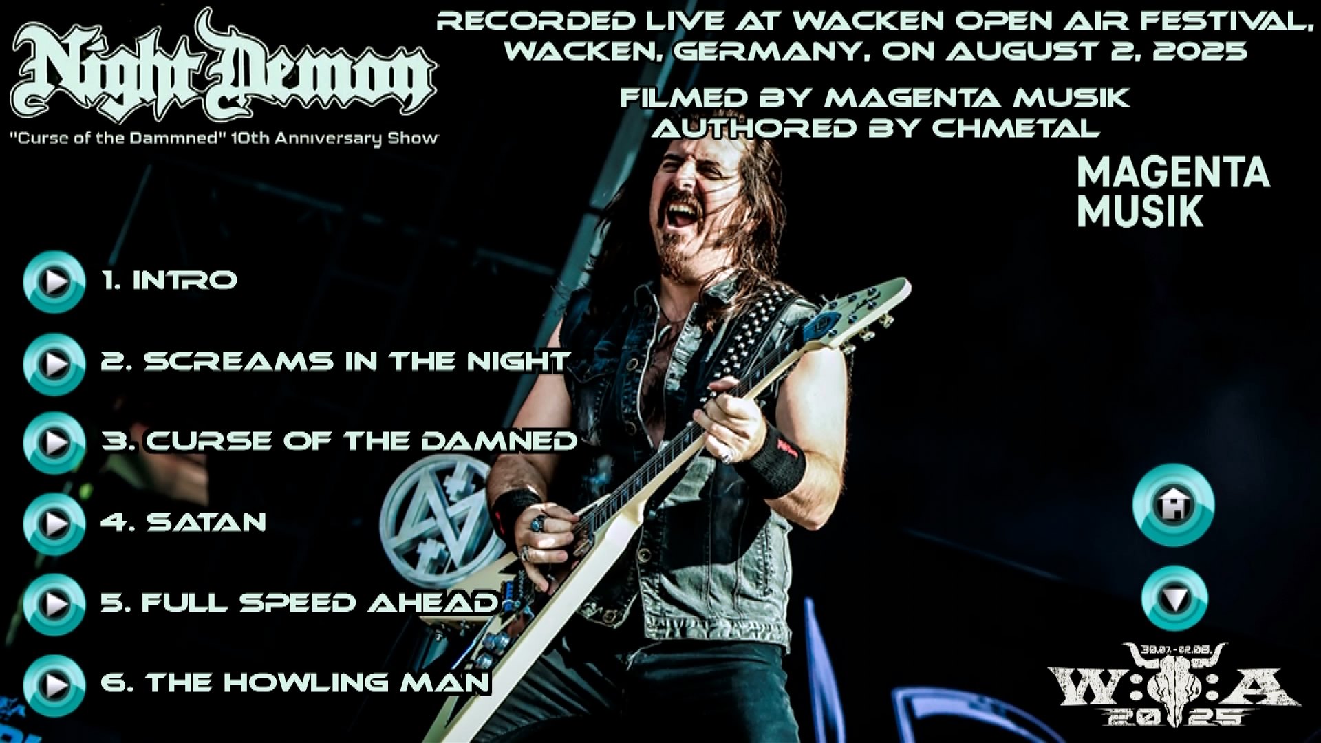 1. Intro 2. Screams in the Night 3. Curse of the Damned 4. Satan 5. Full Speed Ahead 6. The Howling Man 7. Heavy Metal Heat 8. Livin' Dangerous 9. Mastermind 10. Run for Your Life 11. Killer 12. Save Me Now