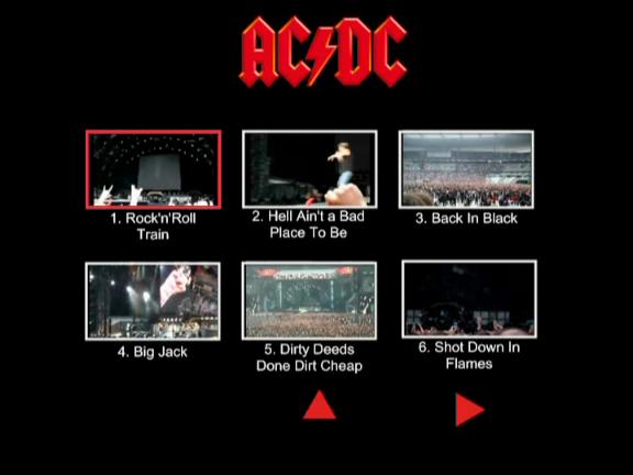 1. Rock'n'Roll Train 2. Hell Ain't a Bad Place to Be 3. Back in Black 4. Big Jack 5. Dirty Deeds Done Dirt Cheap 6. Shot Down in Flames 7. Thunderstruck 8. Black Ice 9. The Jack 10. Hells Bells 11. Shoot to Thrill 12. War Machine 13. Dog Eat Dog 14. Anything Goes 15. T.N.T. 16. Whole Lotta Rosie 17. Let There Be Rock 18. Highway To Hell 19. For Those About to Rock (We Salute You)