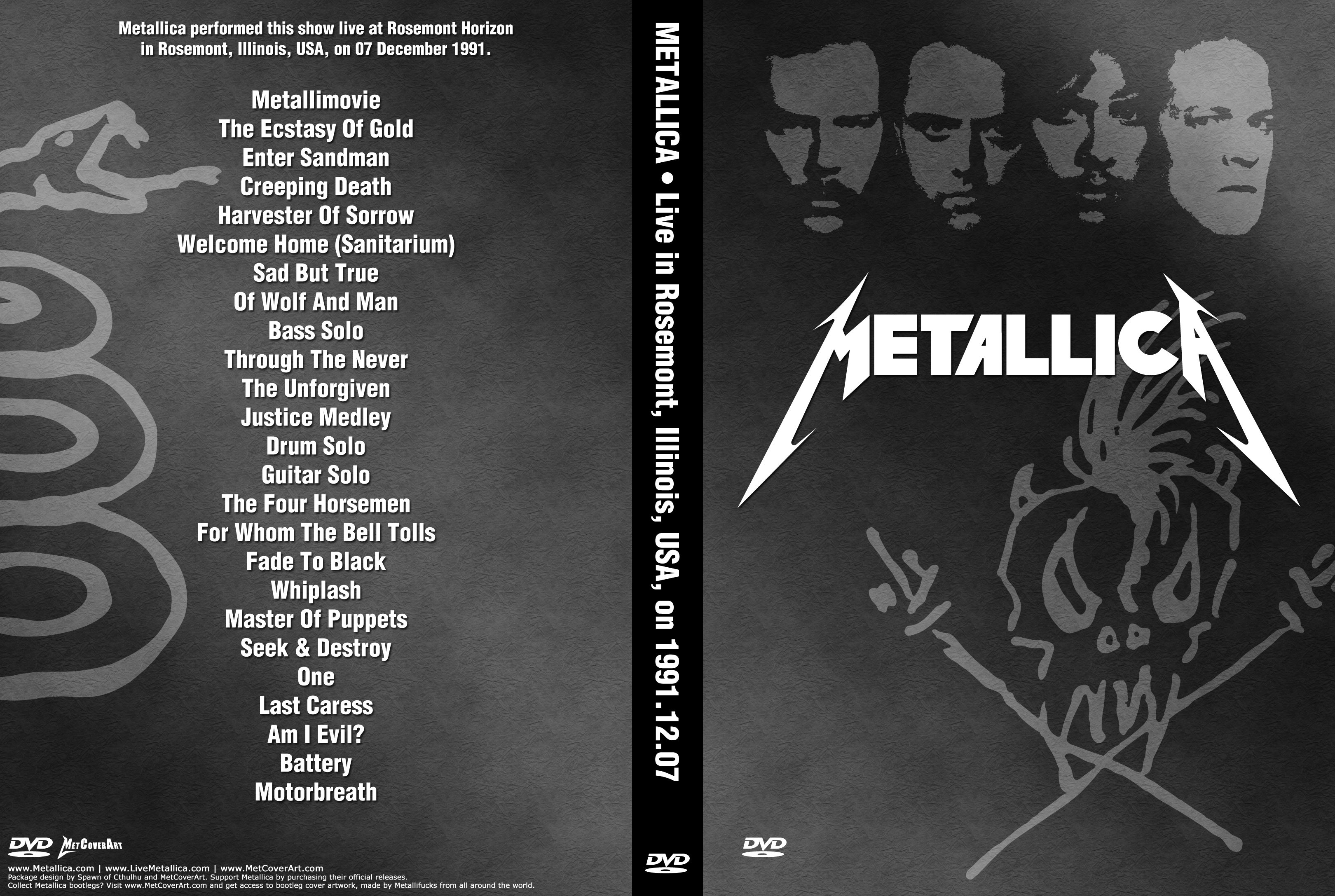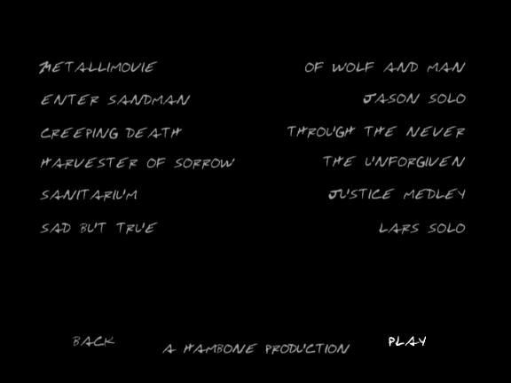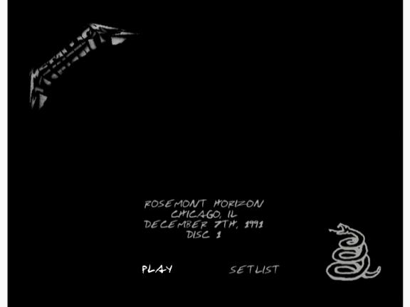 1. Metallimovie 2. The Ecstasy of Gold 3. Enter Sandman 4. Creeping Death 5 .Harvester of Sorrow 6. Welcome Home (Sanitarium) 7. Sad But True 8. Of Wolf and Man 9. Bass Solo 10. Through the Never 11. The Unforgiven 12. Justice Medley 13. Drum Solo