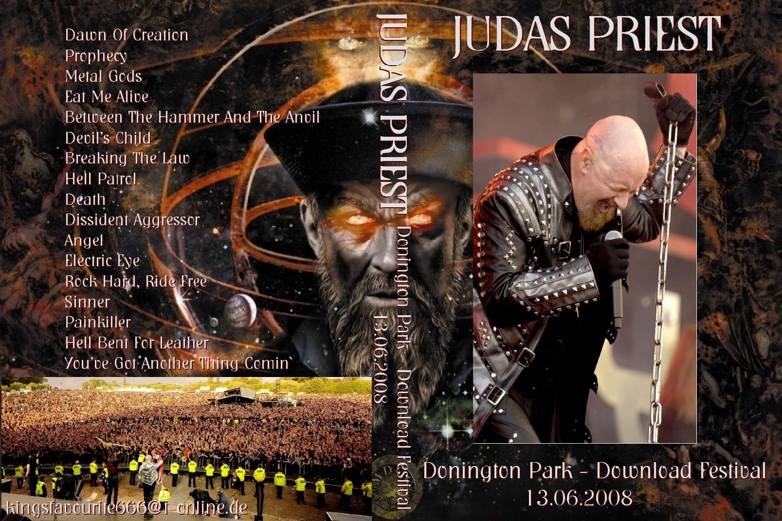 1. Intro: Dawn of Creation 2. Prophecy 3. Metal Gods 4. Eat Me Alive 5. Between the Hammer and the Anvil 6. Devil's Child 7. Breaking the Law 8. Hell Patrol 9. Death 10. Dissident Aggressor 11. Angel 12. The Hellion / Electric Eye 13. Rock Hard, Ride Free 14. Sinner 15. Painkiller 16. Hell Bent For Leather 17. You've Got Another Thing Coming